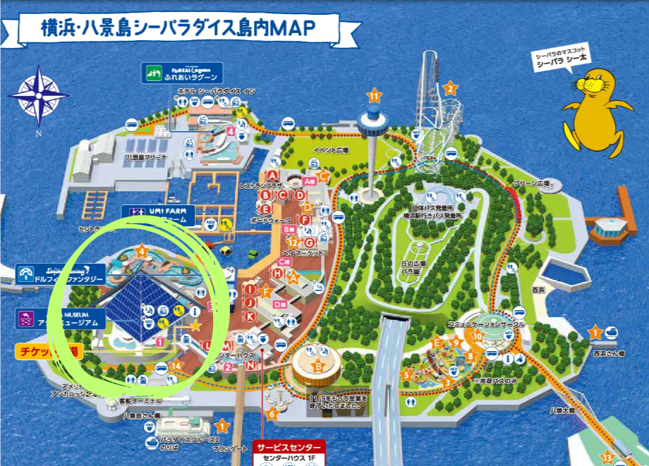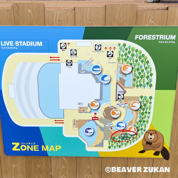 ビーバー見るならアクアミュージアムに向かってね。建物に入ったらビーバーは四階にいるよ!