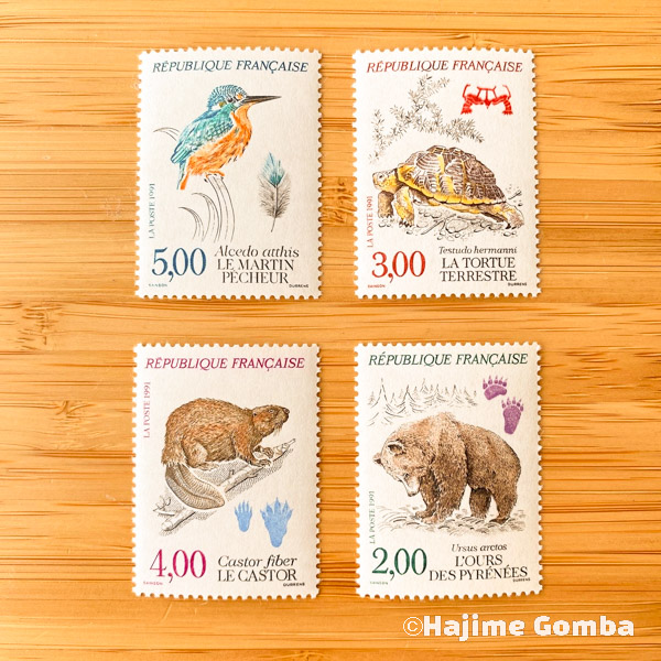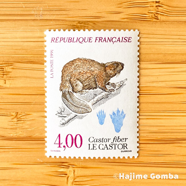【ビーバー切手】Eurasian Beaver 手形・足形 フランス 1991