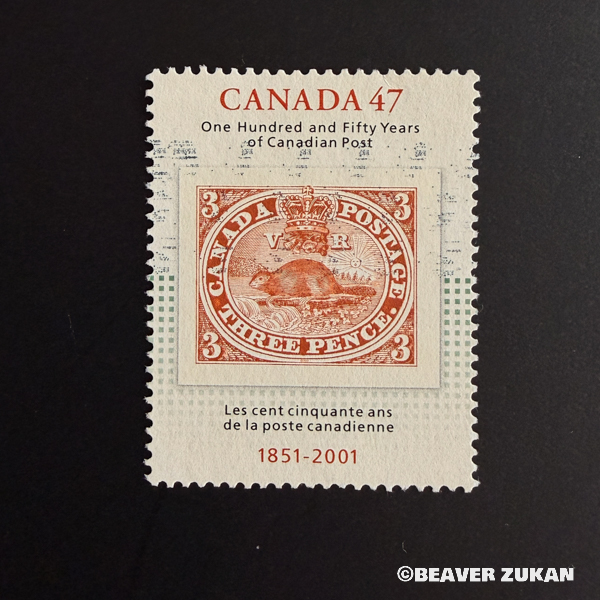 これは1851年にカナダで最初の切手(有名なThree Pence Beaver)が出てから、